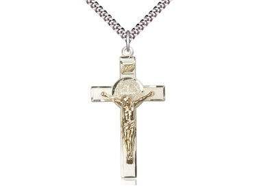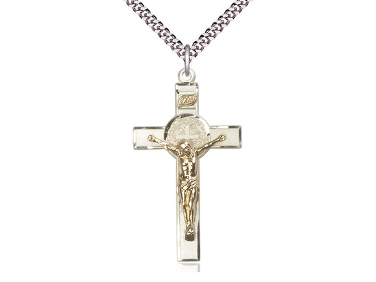 Large Two-Tone GF/SS St. Benedict Crucifix Pendant Necklace 1 3/4 x 1 - 24 Inch Chain
