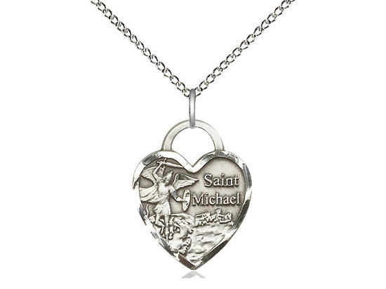 Sterling Silver St. Michael the Archangel Pendant Necklace 3/4 x 5/8 - 18 Inch Chain