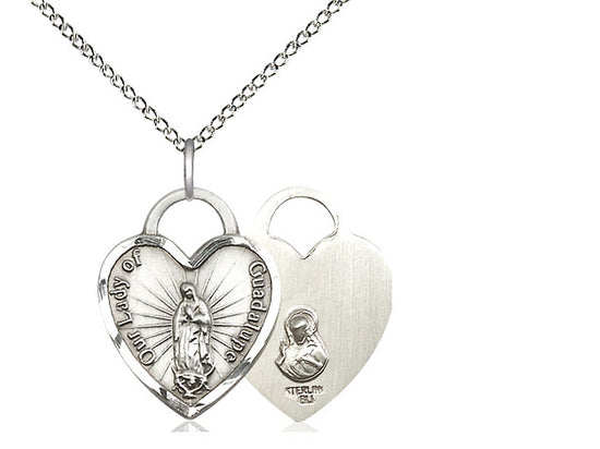 Sterling Silver Our Lady of Guadalupe Heart Pendant Necklace 3/4 x 5/8 - 18 Inch Chain