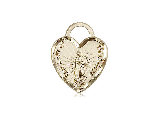 14kt Solid Gold Our Lady of Guadalupe Heart Medal 3/4 X 5/8