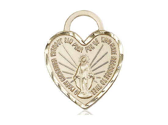 14kt Solid Gold Miraculous Heart Medal 1 x 3/4