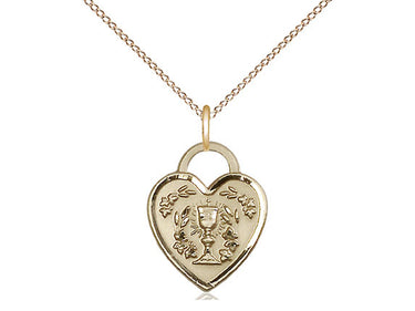 Small 14kt Gold Filled Communion Heart Pendant Necklace 5/8 x 1/2 - 18 Inch Chain