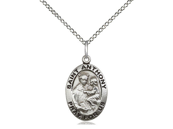 Sterling Silver St. Anthony of Padua Pendant Necklace 3/4 x 1/2 - 18 Inch Chain