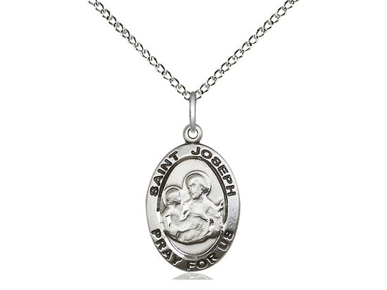 Sterling Silver St. Joseph Pendant Necklace 3/4 x 1/2 - 18 Inch Chain