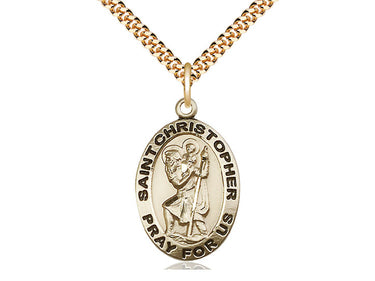 14kt Gold Filled St. Christopher Pendant Necklace 1 x 5/8 - 24 Inch Chain