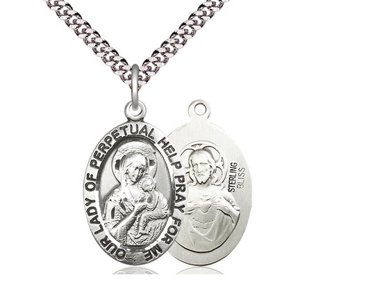 Exquisite Sterling Silver Our Lady of Perpetual Help Necklace (1 x 5/8) on 24 Chain with Lobster Clasp - Handmade in the USA by Bliss