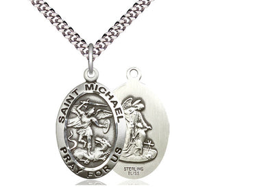 Exquisite Sterling Silver Saint Michael the Archangel Necklace (1 x 5/8) on 24 Chain with Lobster Clasp - Handmade in the USA by Bliss