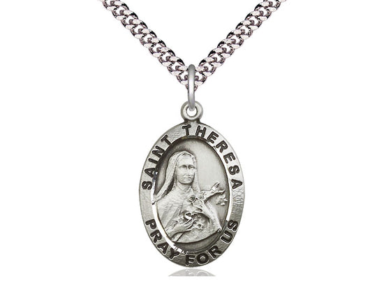Sterling Silver St. Theresa Pendant Necklace 1 x 5/8 - 24 Inch Chain