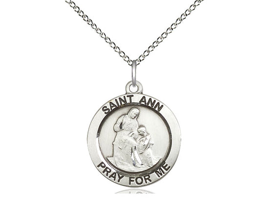 Sterling Silver St. Ann Pendant Necklace 3/4 x 3/4 - 18 Inch Chain