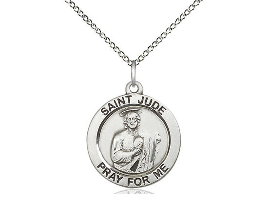 Sterling Silver St. Jude Pendant Necklace 3/4 x 3/4 - 18 Inch Chain