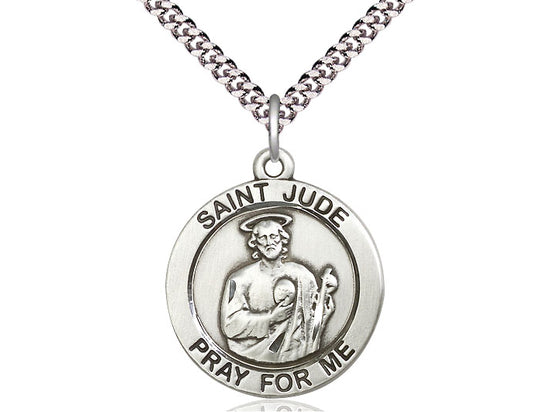 Sterling Silver St. Jude Pendant Necklace 1 x 7/8 - 24 Inch Chain