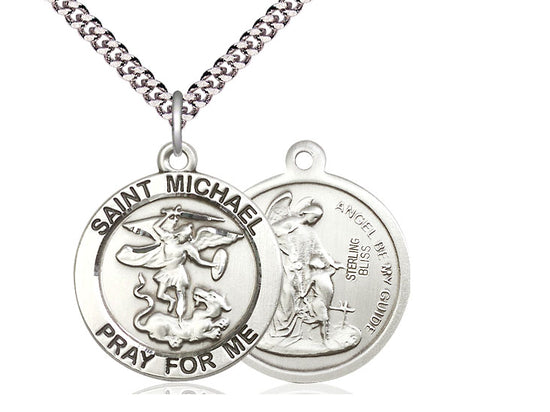 Sterling Silver St. Michael the Archangel Pendant Necklace 1 x 7/8 - 24 Inch Chain