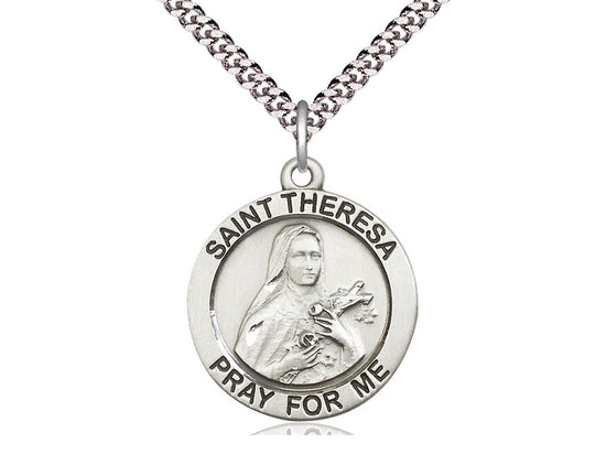 Sterling Silver St. Theresa Pendant Necklace 1 x 7/8 - 24 Inch Chain