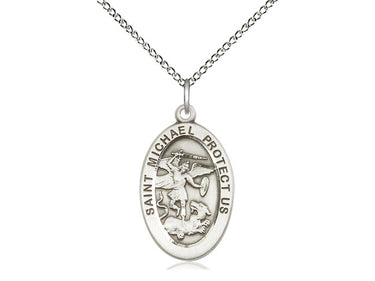 Sterling Silver St. Michael the Archangel Pendant Necklace 7/8 x 1/2 - 18 Inch Chain