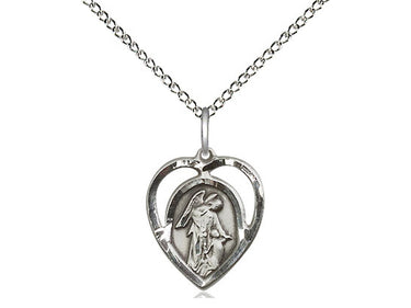 Small Sterling Silver Guardian Angel Pendant Necklace 5/8 x 1/2 - 18 Inch Chain