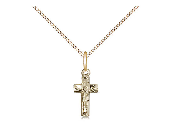Small 14kt Gold Filled Crucifix Pendant Necklace 1/2 x 1/4 - 18 Inch Chain