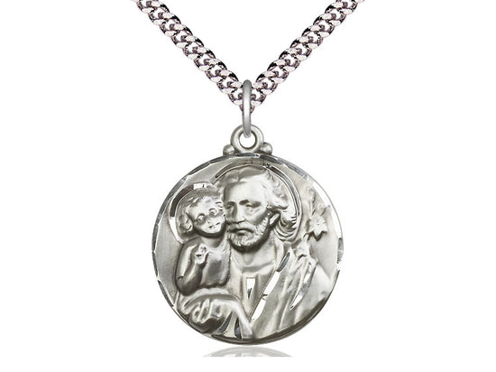 Sterling Silver St. Joseph Pendant Necklace 1 1/8 x 7/8 - 24 Inch Chain