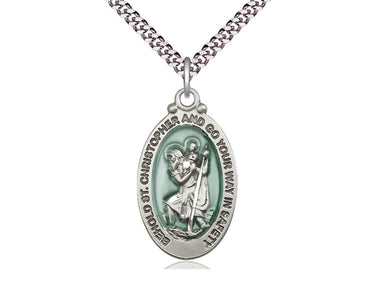 Sterling Silver St. Christopher Pendant Necklace 1 1/8 x 5/8 - 24 Inch Chain