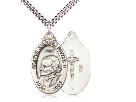 Sterling Silver St. John Paul II Pendant Necklace 1 1/8 x 3/4 - 24 Inch Chain