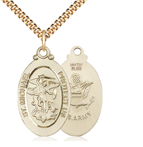 Exquisite Gold Filled Saint Michael / Army Necklace (1 1/8 x 5/8) on 24 Chain with Lobster Clasp - Handmade in the USA by Bliss