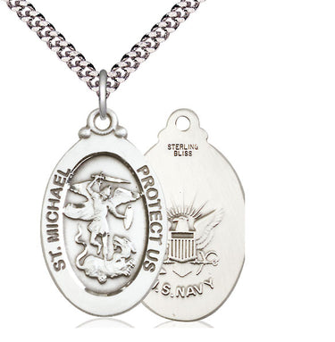Exquisite Sterling Silver Saint Michael / Navy Necklace (1 1/8 x 5/8) on 24 Chain with Lobster Clasp - Handmade in the USA by Bliss