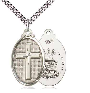 Embrace your faith with timeless elegance. This exquisite Sterling Silver Cross / Army Necklace, measuring 1 1/4 x 5/8, is meticulously handcrafted in the USA by Bliss, a renowned name in religious jewelry. The durable 24-inch Sterling Silver curb chain gracefully drapes with a secure lobster clasp for a comfortable, everyday wear.