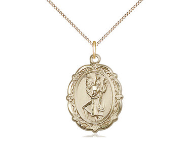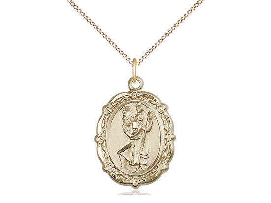 14kt Gold Filled St. Christopher Pendant Necklace 7/8 x 5/8 - 18 Inch Chain