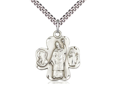 Embrace your faith with timeless elegance. This exquisite Sterling Silver Irish Shamrock Necklace, measuring 1 X 7/8, is meticulously handcrafted in the USA by Bliss, a renowned name in religious jewelry. The durable 24-inch Sterling Silver curb chain gracefully drapes with a secure lobster clasp for a comfortable, everyday wear.