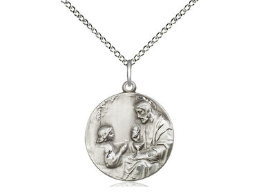 Sterling Silver St. Christopher Pendant Necklace 3/4 x 5/8 - 18 Inch Chain
