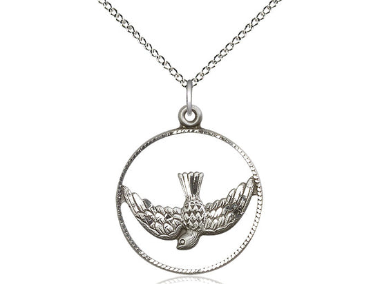 Sterling Silver Holy Spirit Pendant Necklace 1 x 7/8 - 18 Inch Chain