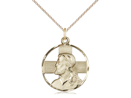 14kt Gold Filled Head of Christ Pendant Necklace 7/8 x 3/4 - 18 Inch Chain