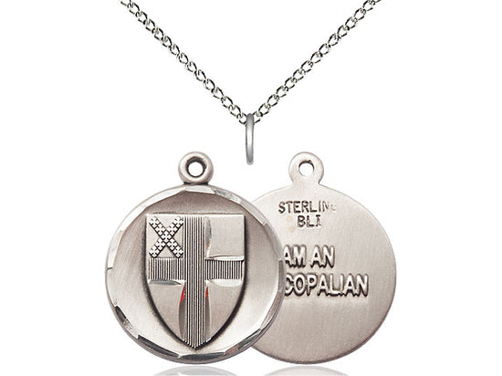 Sterling Silver Episcopal Pendant Necklace 7/8 x 5/8 - 18 Inch Chain
