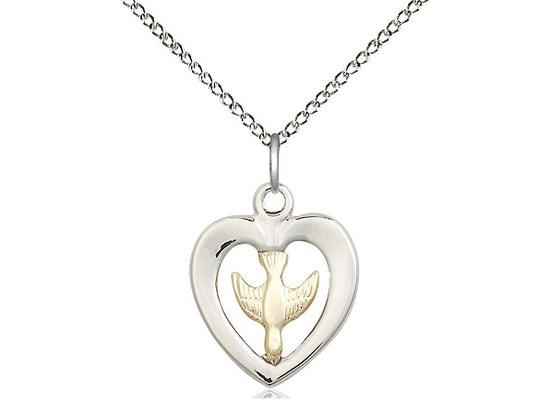 Small Two-Tone GF/SS Holy Spirit Pendant Necklace 5/8 x 1/2 - 18 Inch Chain