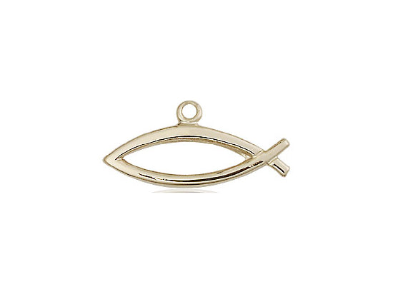 Embrace your faith with timeless elegance. This exquisite 14KT Gold Fish Pendant, measuring 3/8 x 3/4, is meticulously handcrafted in the USA by Bliss, a renowned name in religious jewelry. The durable -inch 14KT Gold curb chain gracefully drapes with a secure lobster clasp for a comfortable, everyday wear.