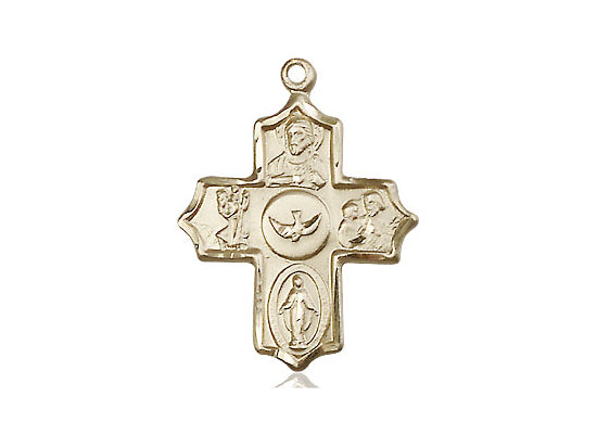 Embrace your faith with timeless elegance. This exquisite 14KT Gold 5-Way Pendant, measuring 7/8 x 5/8, is meticulously handcrafted in the USA by Bliss, a renowned name in religious jewelry. The durable -inch 14KT Gold curb chain gracefully drapes with a secure lobster clasp for a comfortable, everyday wear.