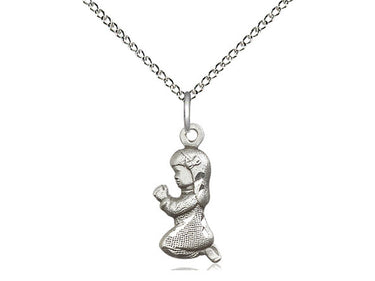 Small Sterling Silver Praying Girl Pendant Necklace 5/8 x 1/4 - 18 Inch Chain