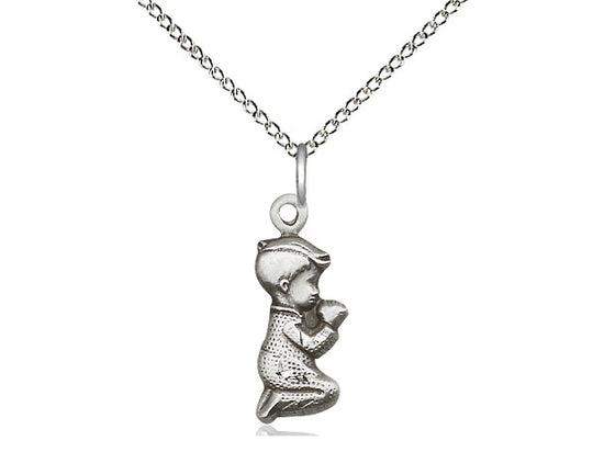 Sterling Silver Praying Boy Pendant Necklace 3/4 x 1/4 - 18 Inch Chain