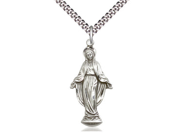 Large Sterling Silver Miraculous Pendant Necklace 1 3/8 x 5/8 - 24 Inch Chain