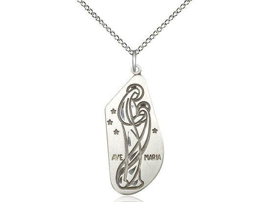 Large Sterling Silver Ave Maria Pendant Necklace 1 1/4 x 1/2 - 18 Inch Chain