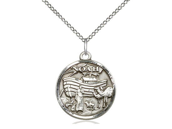 Sterling Silver Noah Pendant Necklace 3/4 x 3/4 - 18 Inch Chain