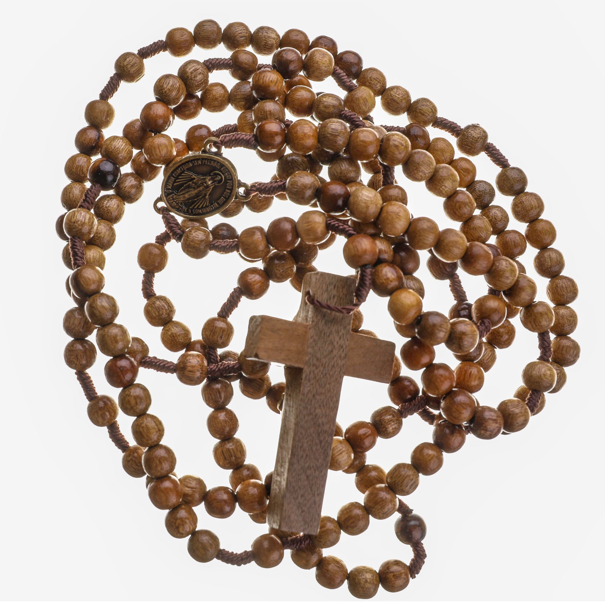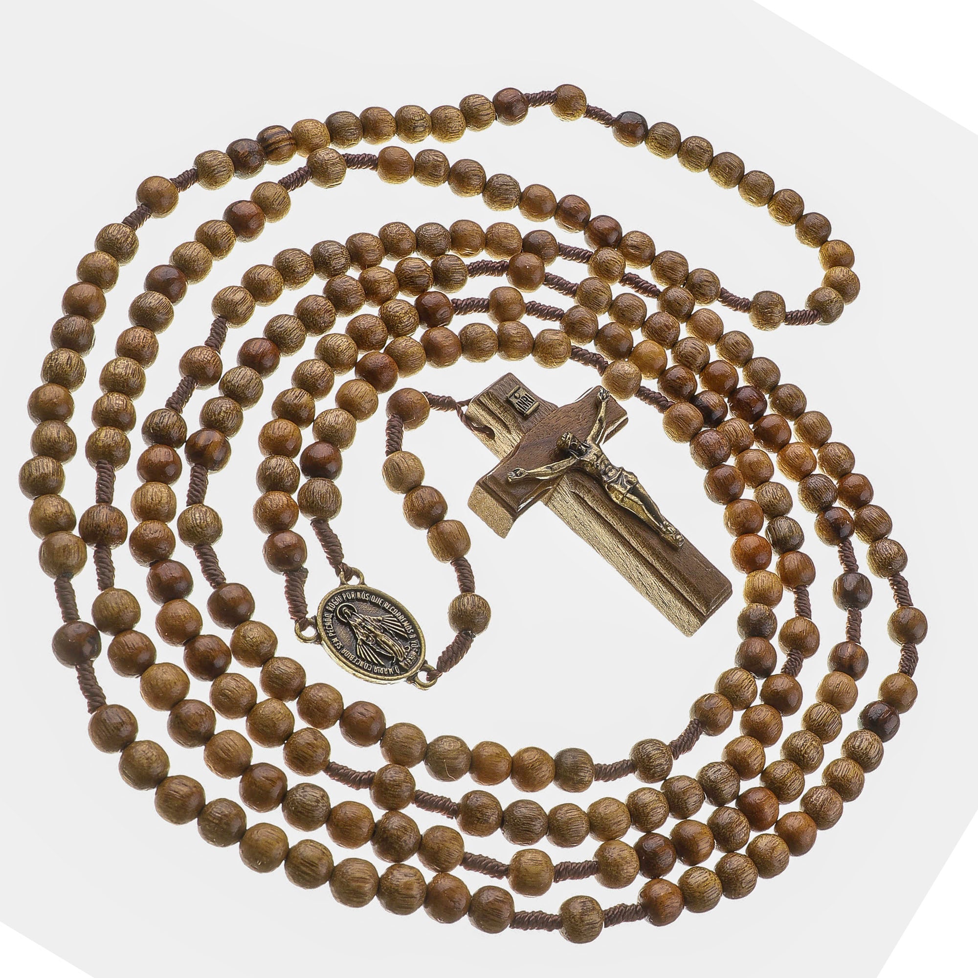 - Natural Wood Beads: The 7mm round beads are made from high-quality natural wood, offering a rustic and organic feel. The unique grain of each bead adds character, making every rosary one-of-a-kind.