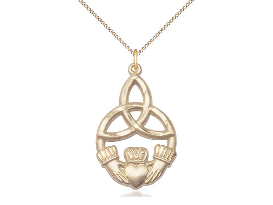 Large 14kt Gold Filled Irish Knot / Claddagh Pendant Necklace 1 1/4 X 3/4 - 18 Inch Chain