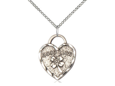 Sterling Silver GOOD LUCK SHAMROCK HEART Pendant Necklace 3/4 X 5/8 - 18 Inch Chain