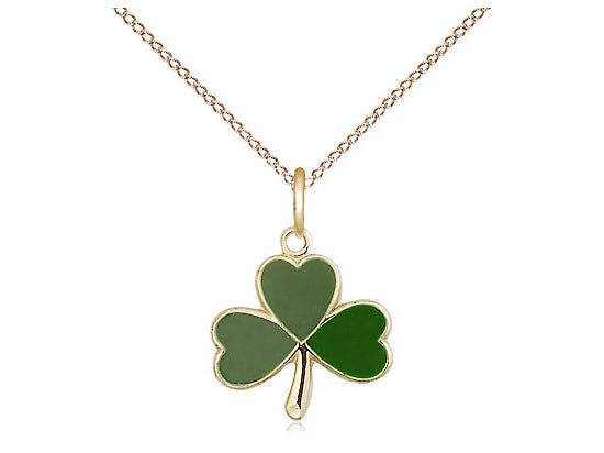 Small 14kt Gold Filled Shamrock Pendant Necklace 1/2 x 1/2 - 18 Inch Chain