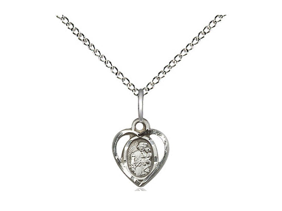 Small Sterling Silver St. Joseph Pendant Necklace 3/8 x 3/8 - 18 Inch Chain