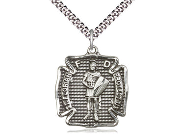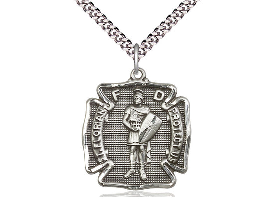 Sterling Silver St. Florian Pendant Necklace 1 1/8 x 1 - 24 Inch Chain