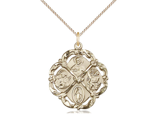Embrace your faith with timeless elegance. This exquisite Gold Filled 5-Way Necklace, measuring 1 x 7/8, is meticulously handcrafted in the USA by Bliss, a renowned name in religious jewelry. The durable 18-inch Gold Filled curb chain gracefully drapes with a secure lobster clasp for a comfortable, everyday wear.