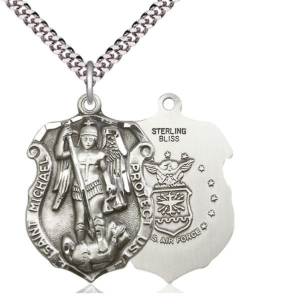 Exquisite Sterling Silver Saint Michael / Air Force Necklace (1 1/4 x 3/4) on 24 Chain with Lobster Clasp - Handmade in the USA by Bliss