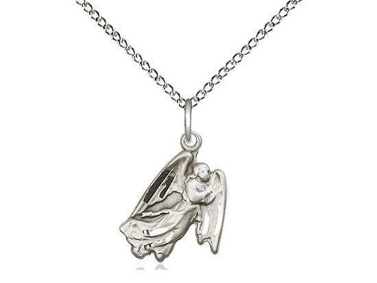 Small Sterling Silver Guardian Angel Pendant Necklace 5/8 x 1/2 - 18 Inch Chain