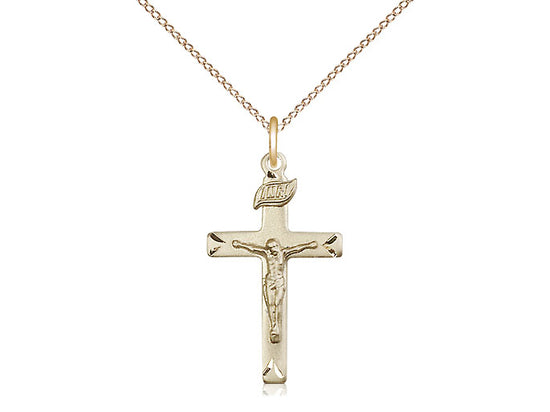14kt Gold Filled Crucifix Pendant Necklace 7/8 x 1/2 - 18 Inch Chain